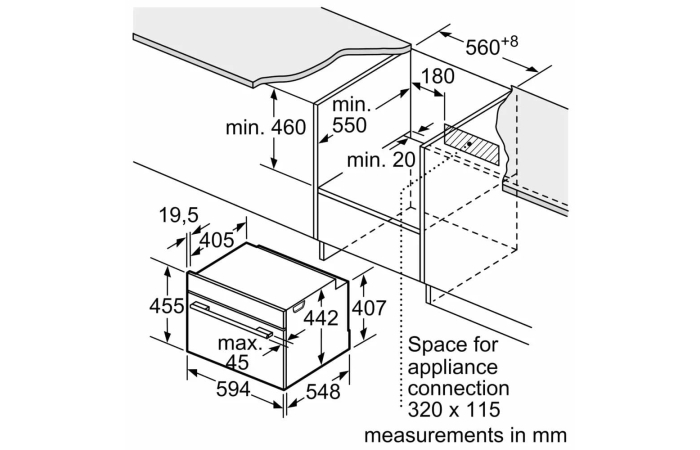 | Kiểu lắp đặt | Lò nướng kết hợp vi sóng âm tủ (Compact 45cm) |